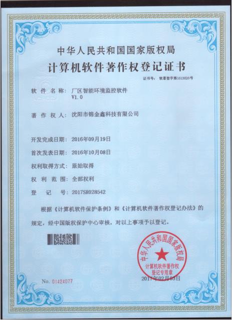 軟件著作權(quán)-廠區(qū)智能環(huán)境監(jiān)控軟件V1.0